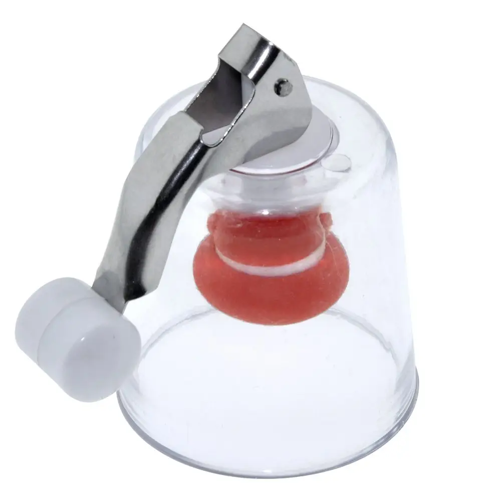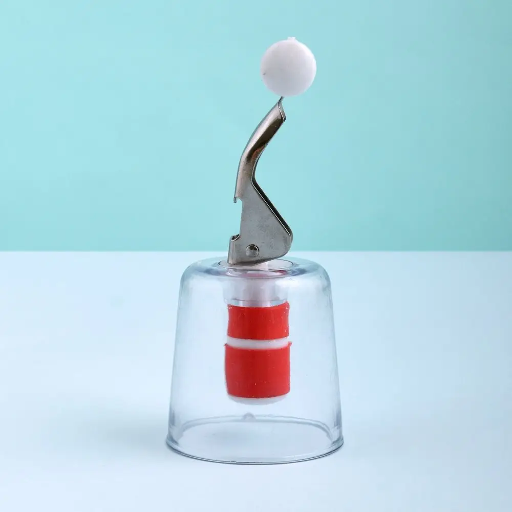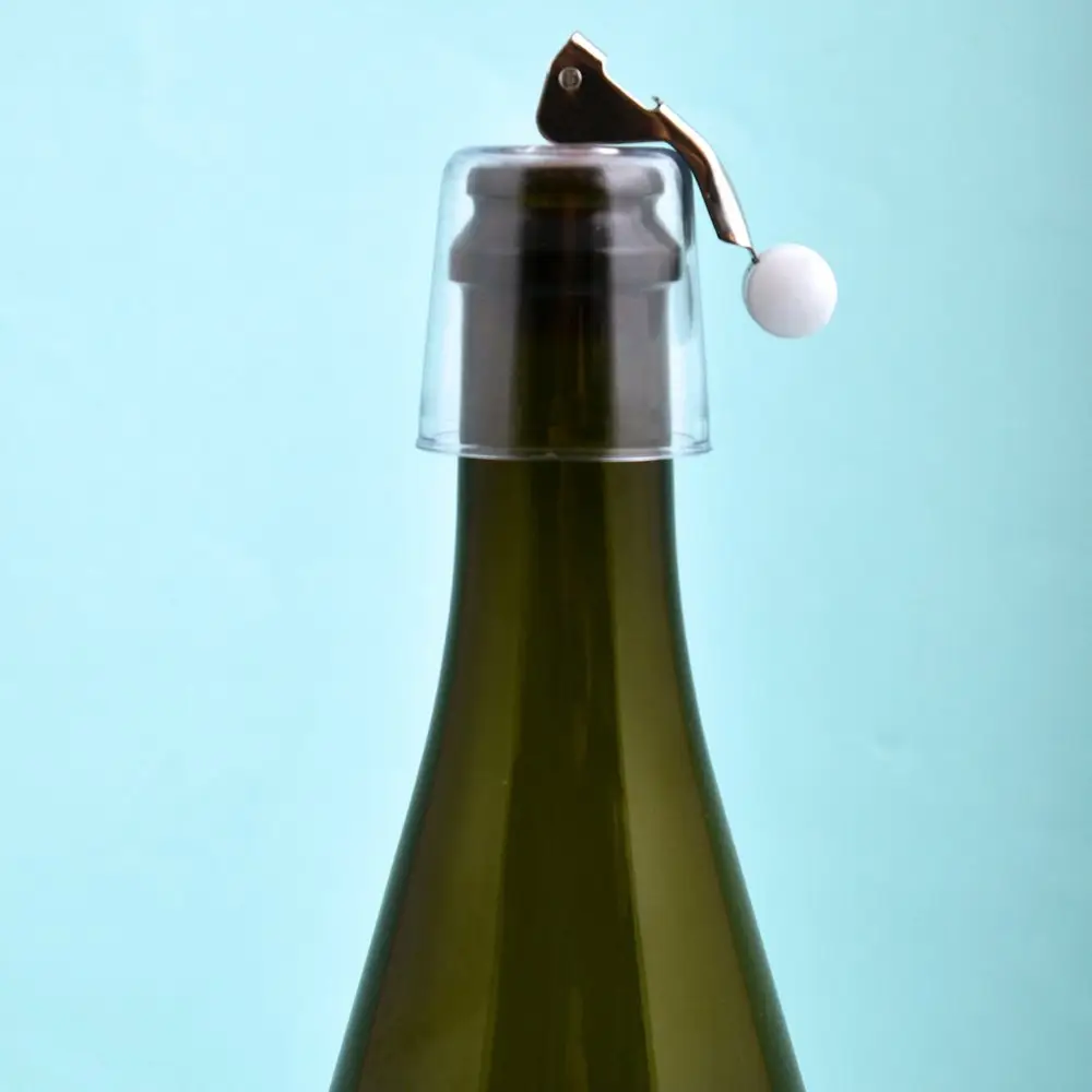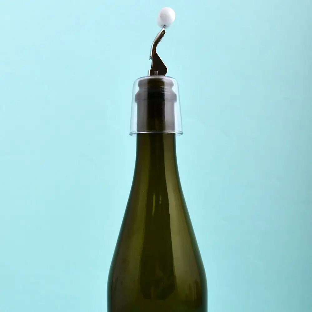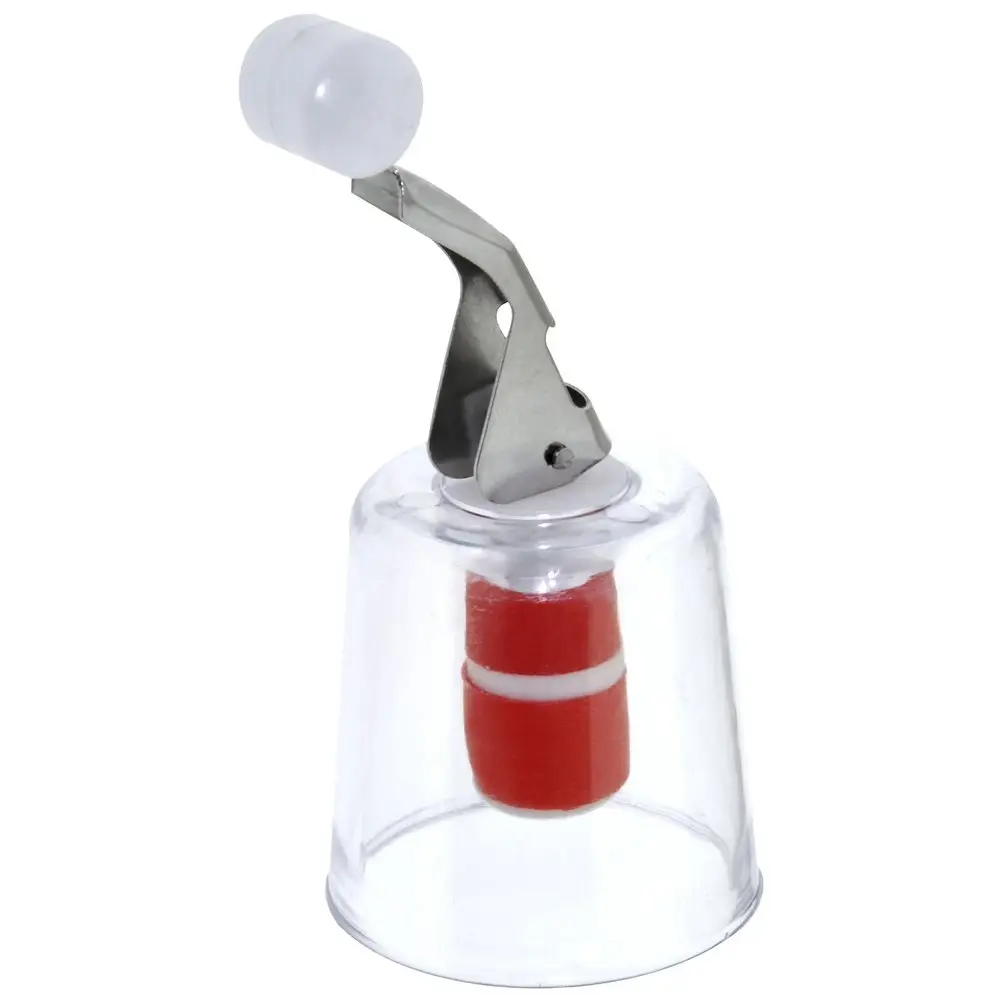 Пробка с зажимом позволяет плотно закрывать бутылки с жидкостями. Изделие подойдет для горлышек стандартного размера, с его помощью можно хранить вино, масло, уксус и другие жидкости в бутылках. Приспособление оснащено колпачком-стаканчиком, создающим дополнительную защиту от пыли. Пробка надежно защитит содержимое от выветривания, попадания пыли и посторонних запахов. Изготовлена из пластмассы (АБС, ТПР), зажим из нержавеющей стали.