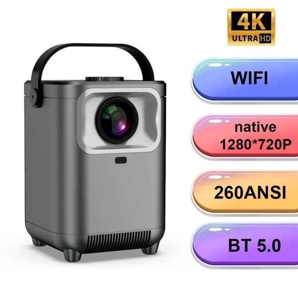 Отличный домашний мини проектор для семейного просмотра фильмов а также видео на ютуб (YouTube) встроенный андроид позволит вам установить любое приложение из магазина приложений. Домашний кинотеатр позволит вам с наслаждением посмотреть фильм и отдохнуть после тяжелого дня, большой экран, удобство использования! Изображение с светодиодного проектора не излучает свет, а значит максимально естественно для глаз и безопасен для детей. Вы можете просмотреть целый сезон любимого сериала используя проектор мультимедийный без вреда для зрения. Многослойная линза выполнена из стекла со специальным покрытием устойчивым к царапинам. Разрешение устройства 4K. Более яркие, насыщенные цвета и четкая картинка на безграничном проекционном экране. Кинопроектор имеет предустановленную операционную систему Android. Это позволяет смотреть видео и играть без подключения внешних устройств. Вы можете направить мини проектор портативный на любую плоскую поверхность: бумажный экран, стену или потолок и использовать как оборудование для презентаций. Выводите на видеопроектор изображение с любого телефона, который находится с ним в одной Wi-Fi сети. Проектор для мультиков, фильмов воспроизводит стереозвук через два динамика по 3 Вт каждый. Интерфейсы и разъемы Вид разъема HDMI; 2xUSB; AUX Технические особенности Напряжение 12Вт; 220В Другие функции Поддерживаемый формат MOV; MP3; BluRay Дополнительная информация Технология проецирования лазерный; LED Lights Совместимые ОС Android; iOS; AirPlay iphone Доп. опции проектора встроенные динамики; Повтор экрана; Активный порт HDMI Страна производства Китай