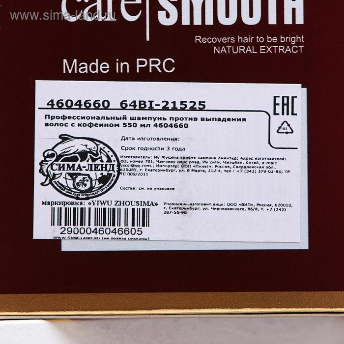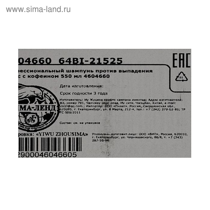 Профессиональный шампунь против выпадения волос с кофеином, 550 мл