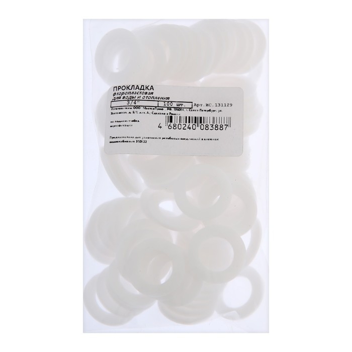 Прокладка из фторопласта Masterprof ИС.131129, 3/4", набор 100 шт.