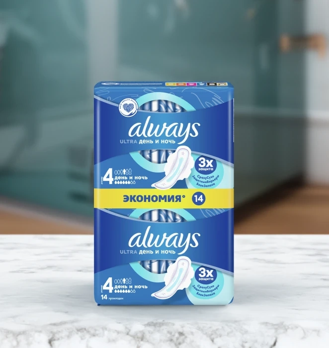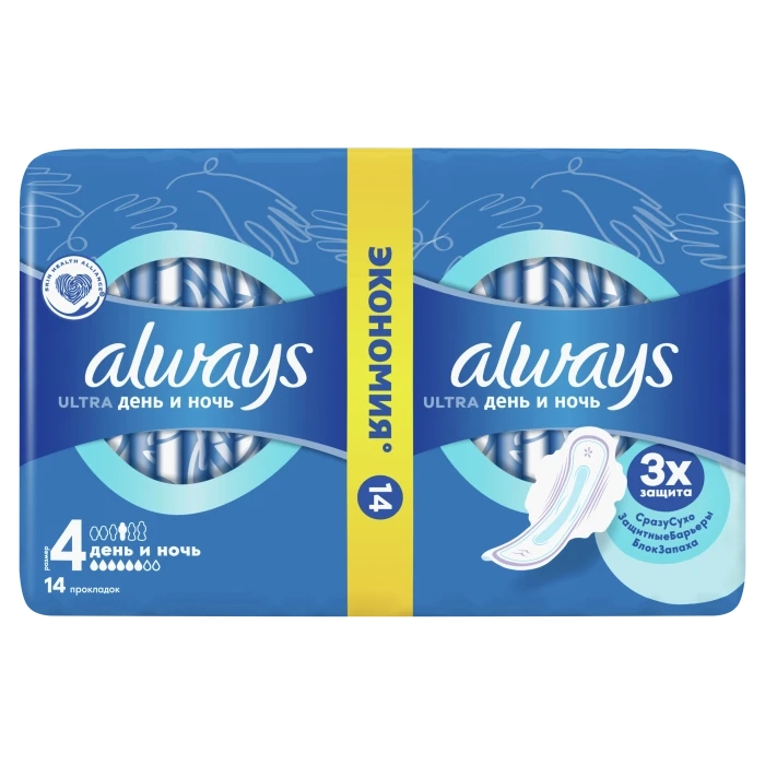 Прокладки ALWAYS" ultra день и ночь 10 ультра нормал 14шт