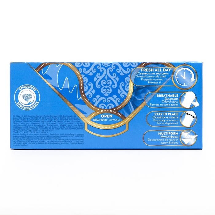 - Ежедневные экстрадышащие гигиенические прокладки, сохраняют свежесть до 12 часов.
