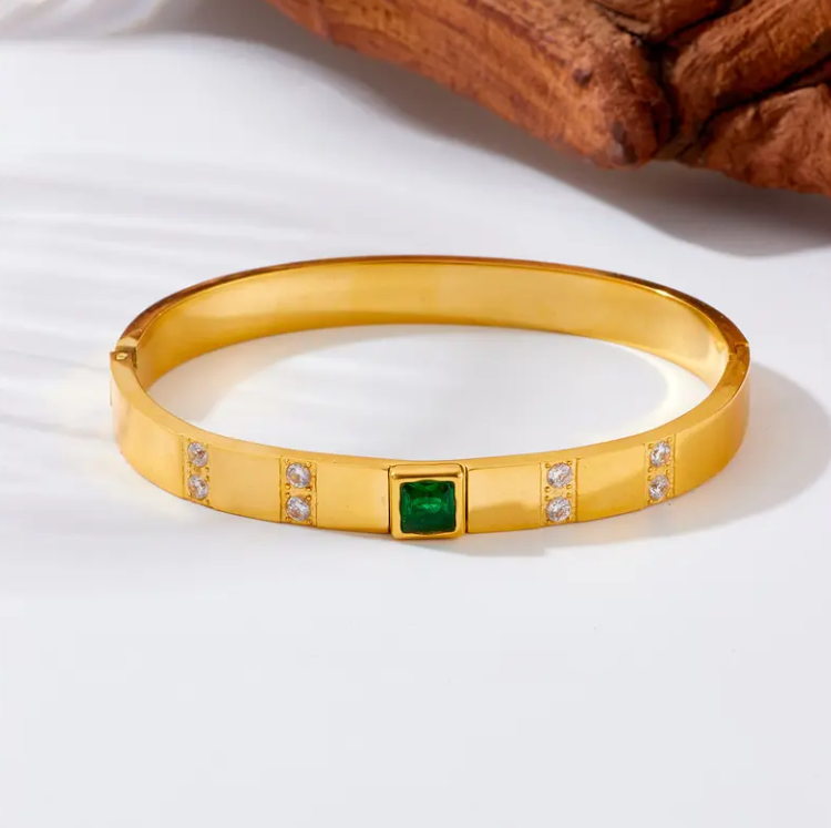 Простой Модный 18k Pvd позолоченный квадратный Изумрудный циркониевый браслет, ювелирные изделия из нержавеющей стали 316l браслет для женщин