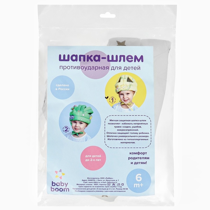 Противоударная шапка-шлем предназначена для защиты головы ребенка начинающего ползать или ходить. Шлем регулируется по объему головы. Размер 44-56. Для детей от 6 мес. до 2-х лет.
