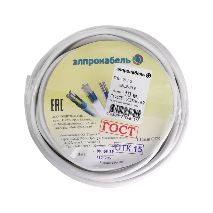Провод гибкий круглый ПромЭл ПВС, 2х1.5, 10 м, ГОСТ