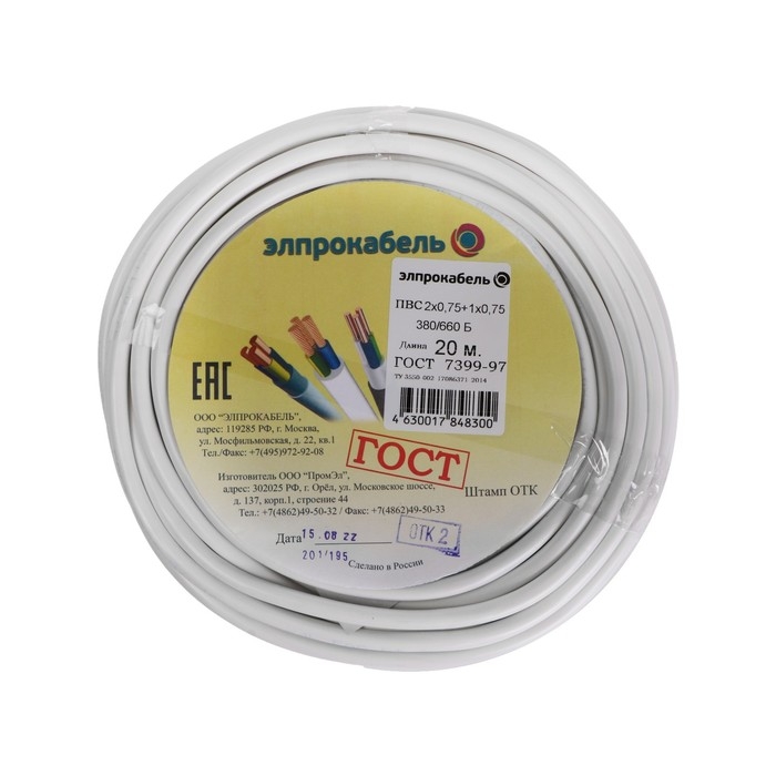 Провод гибкий круглый ПромЭл ПВС, 3х0.75, 20 м, ГОСТ