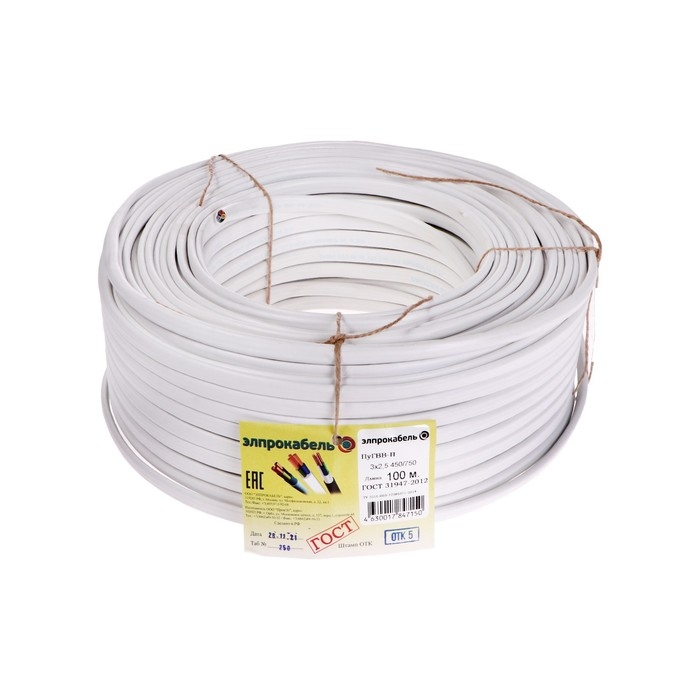 Провод гибкий плоский установочный ПромЭл ПуГВВп, 3х2.5, 100 м, ГОСТ