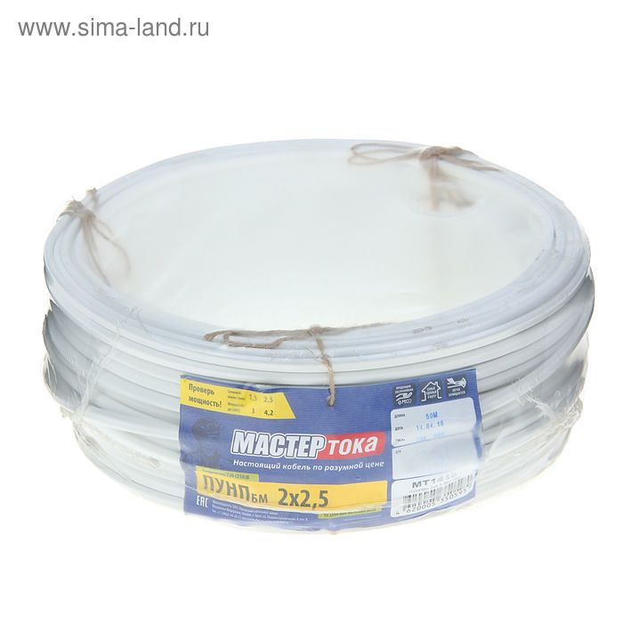 Провод "Мастер Тока" ПУНПбм, сечение 2х2.5 мм2, 50 м, белый