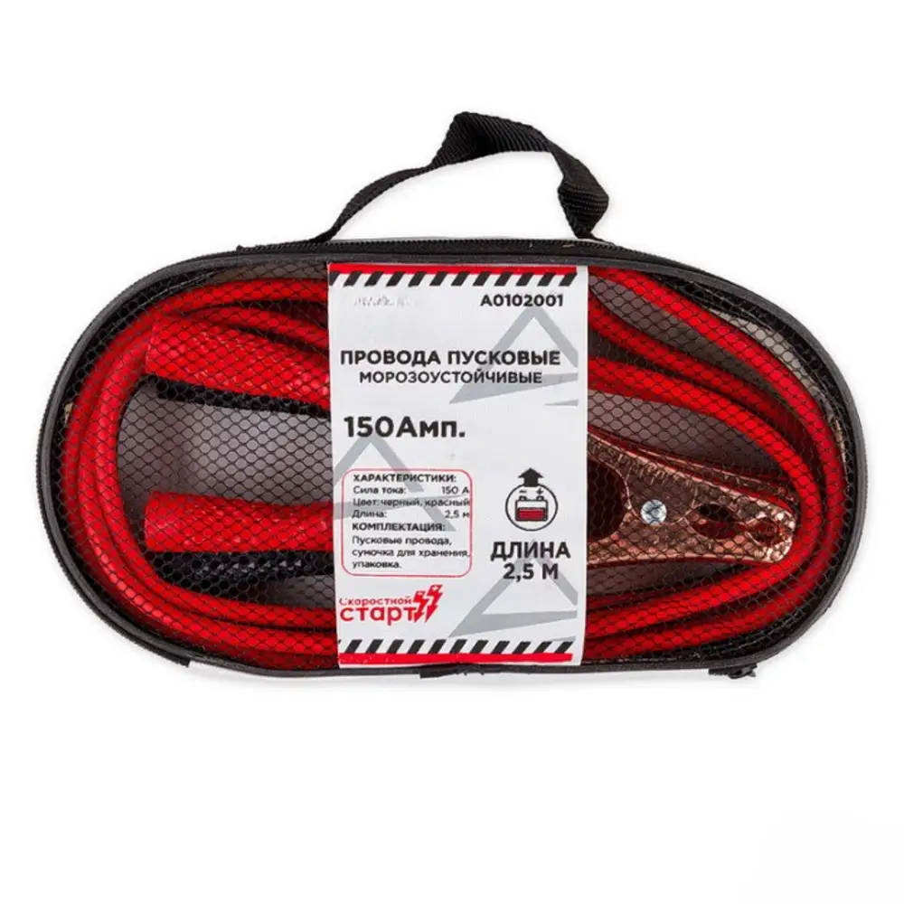 Провода прикуривания АКБ 150А 2,5м в сумке (12В, d=7мм 64жил, -40С