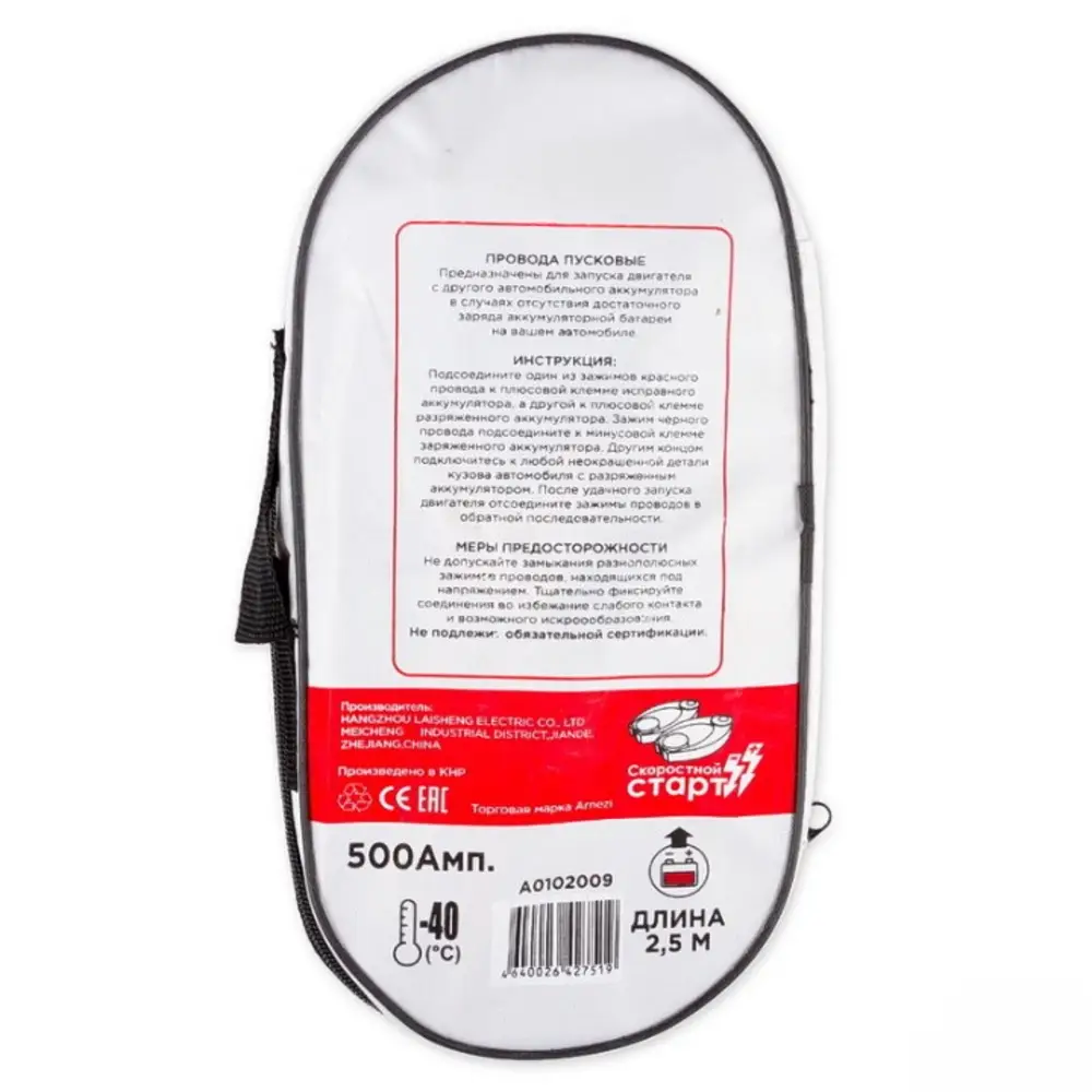 Провода прикуривания АКБ 500А 2,5м в сумке
