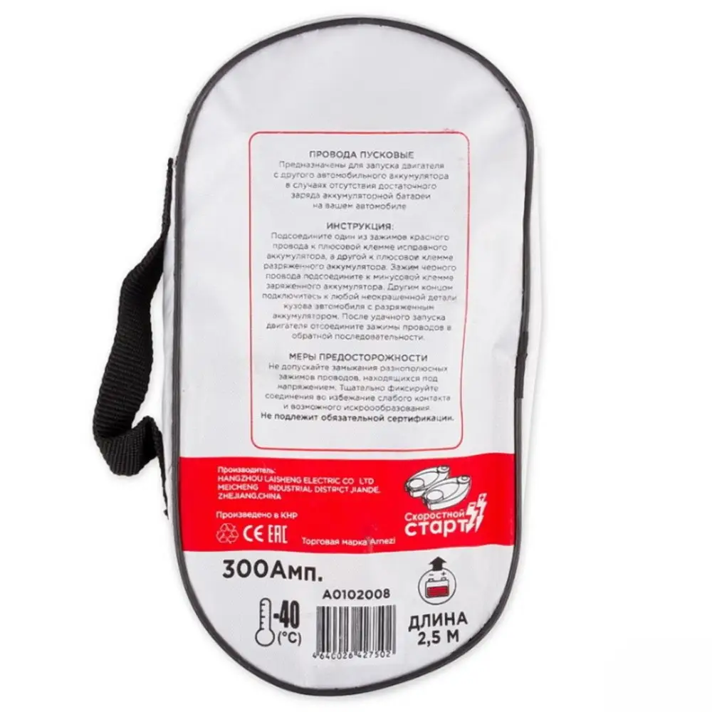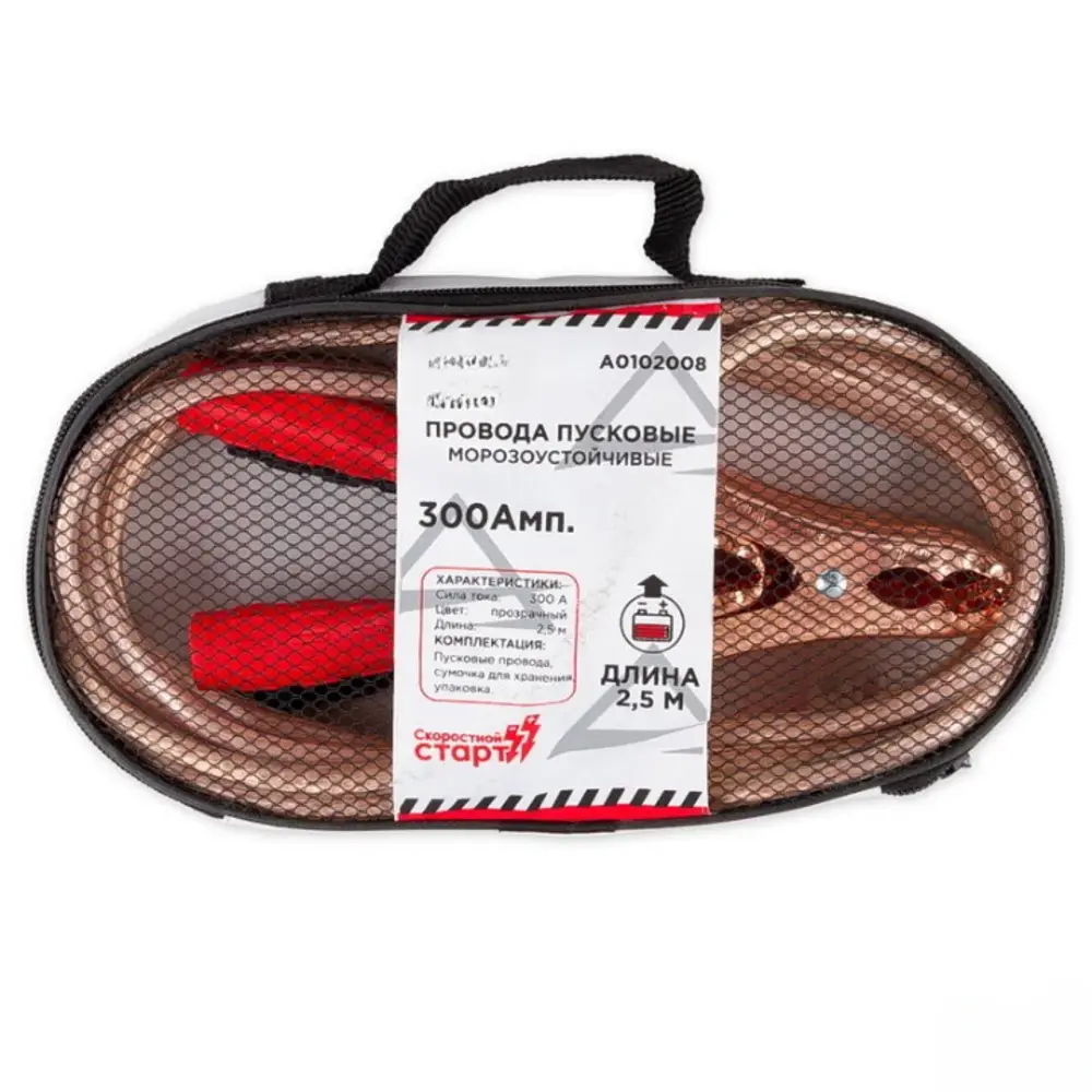 Провода прикуривания АКБ 300А 2,5м в сумке (12В, d=8,5мм 128жил, силиконовые, -40С)