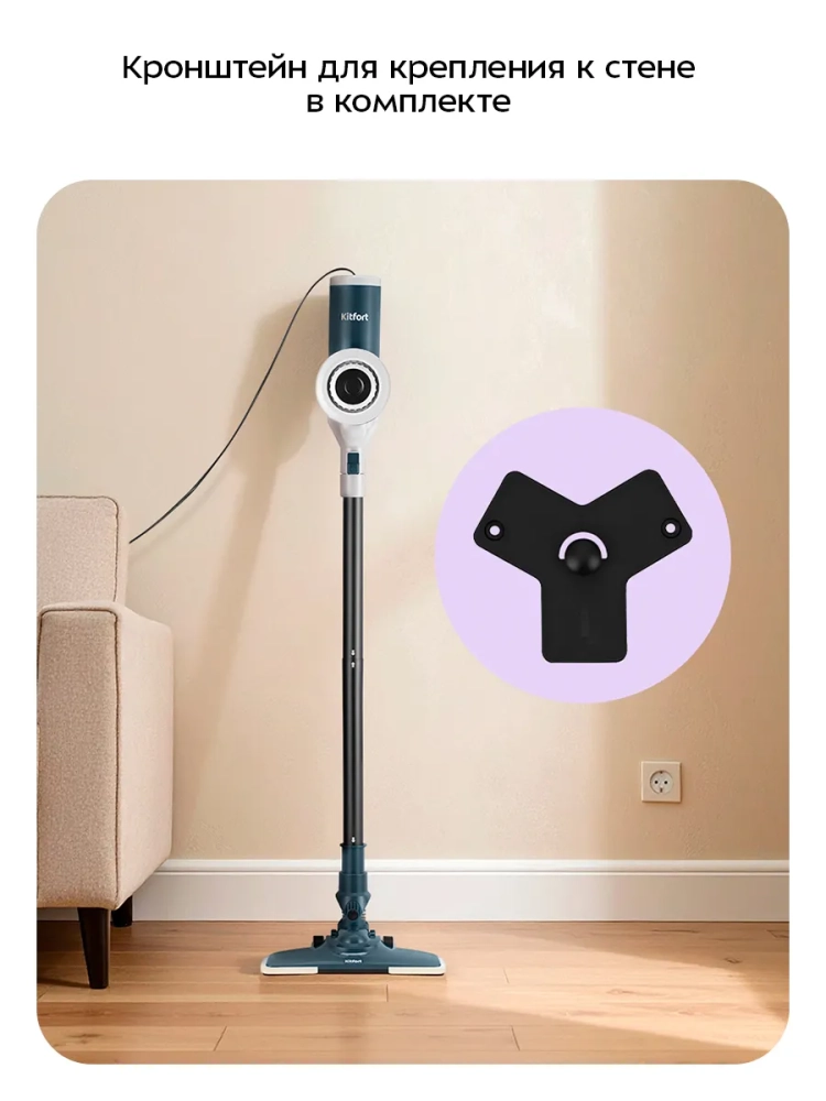 Одно из главных достоинств вертикального пылесоса — его компактность. Благодаря маневренности пылесоса с его помощью можно легко убрать узкий коридор или комнату, заполненную мебелью и предметами. У пылесоса нет функции вертикальной парковки, поэтому для удобства хранения прибора в комплекте поставляется кронштейн, который крепится к стене. Для владельцев небольших квартир, которые сталкиваются с проблемой хранения бытовых приборов, приобретение этой модели будет оптимальным вариантом.