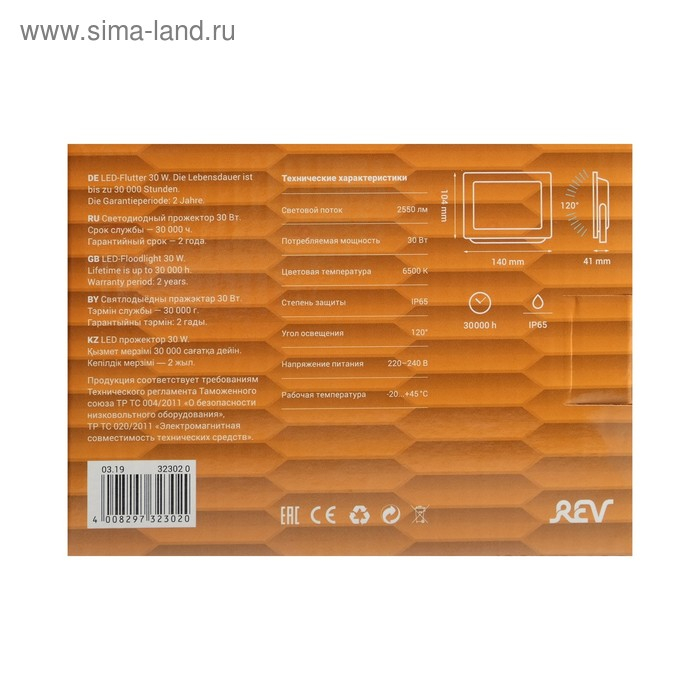 Прожектор светодиодный REV, 30 Вт, 6500 К, 2550 Лм, IP65