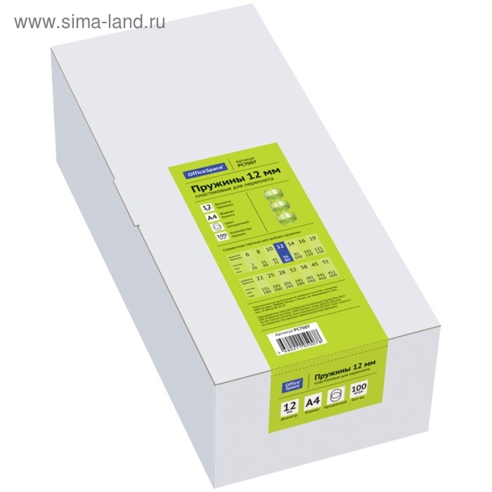 Пружины пластиковые для переплёта 100 штук, 12 мм OfficeSpace, прозрачные, бесцветные