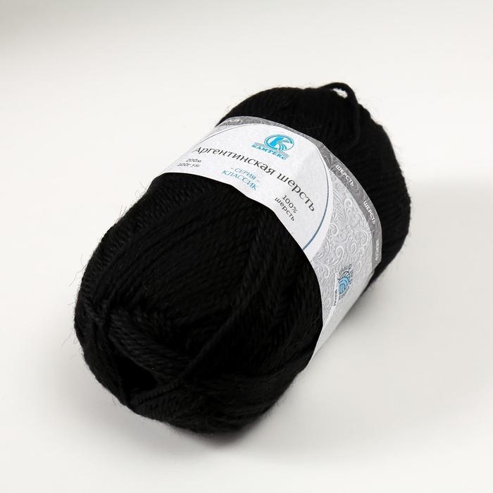 Пряжа "Аргентинская шерсть" 100% импортная шерсть 200м/100гр (003, черный)