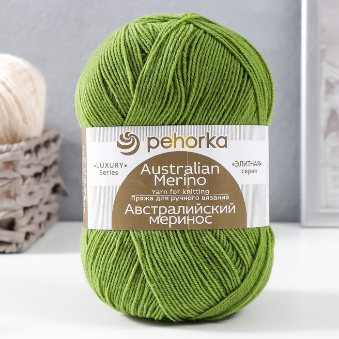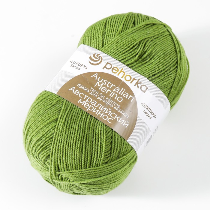 Пряжа "Австралийский меринос" 95%мерин.шерсть,5% акрил объёмный 400м/100гр (252-Зел.горох)