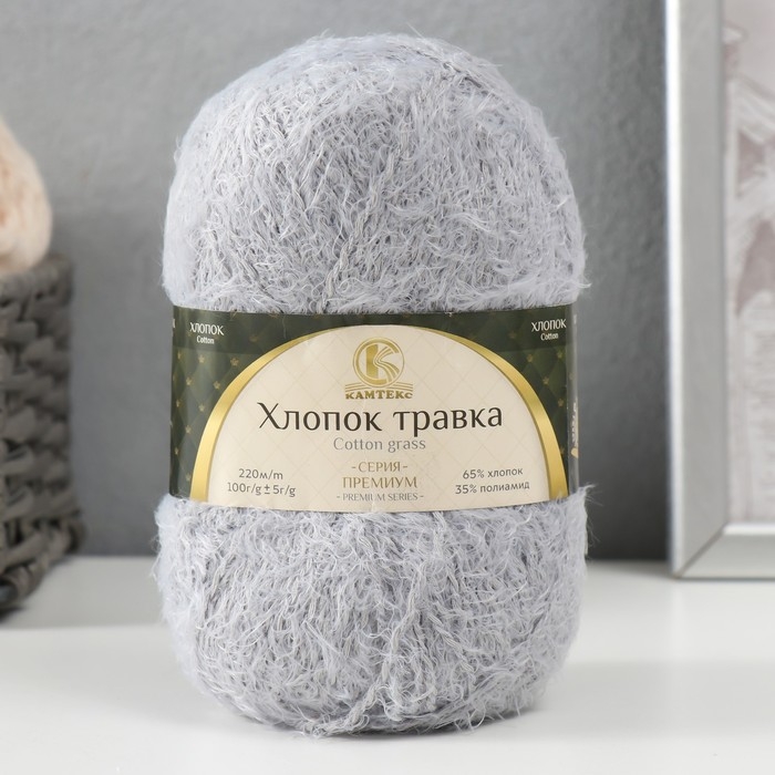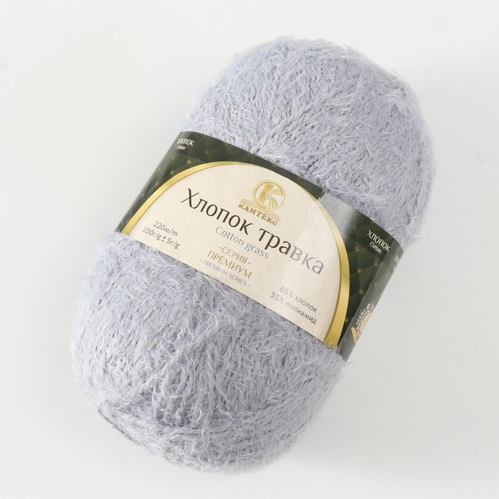 Пряжа "Хлопок травка" 65% хлопок 35% полиамид 220м/100гр (008 серебро)