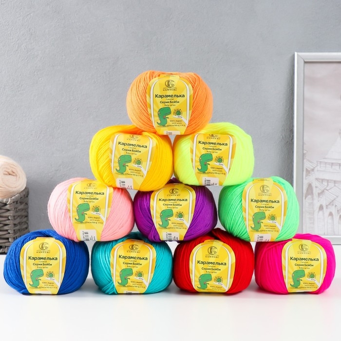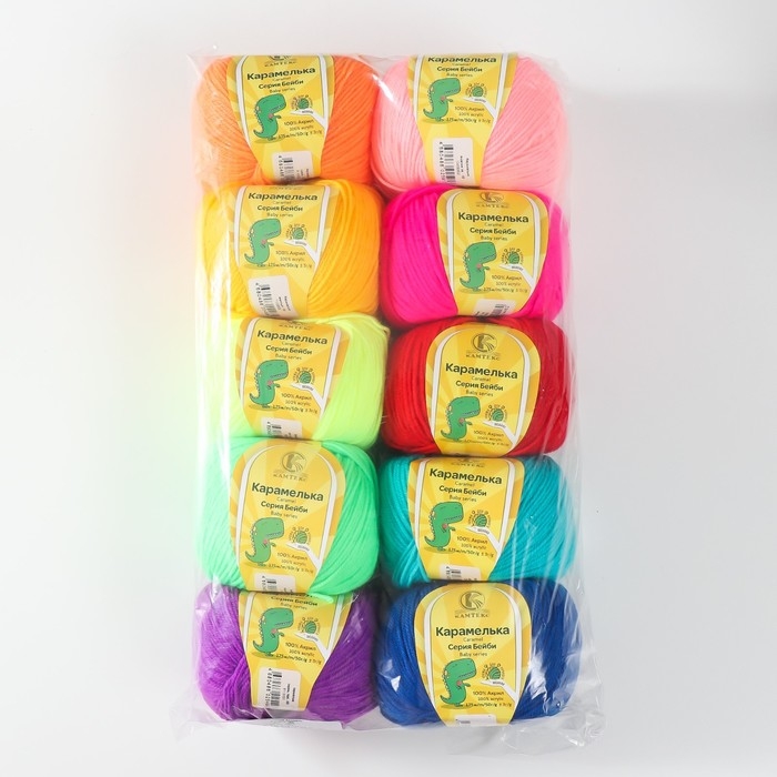 Пряжа "Карамелька ассорти" 100% акрил набор 10 шт. 175м/50гр (Ассорти №2)