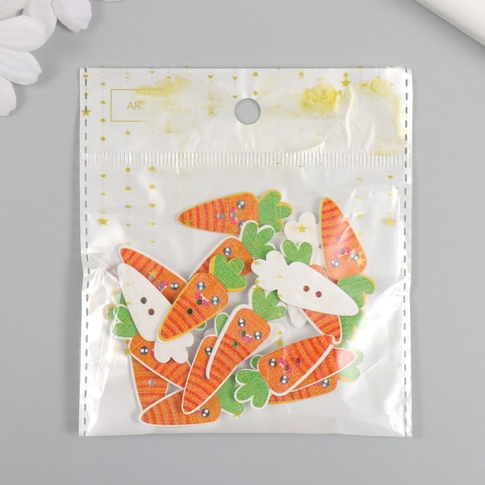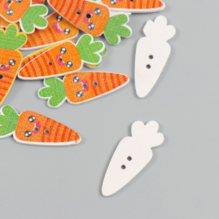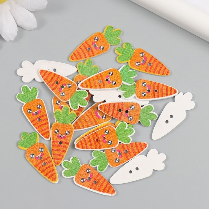 Пуговицы дерево для творчества 2 прокола "Морковка-смайл" набор 20 шт 1,3х3,5 см