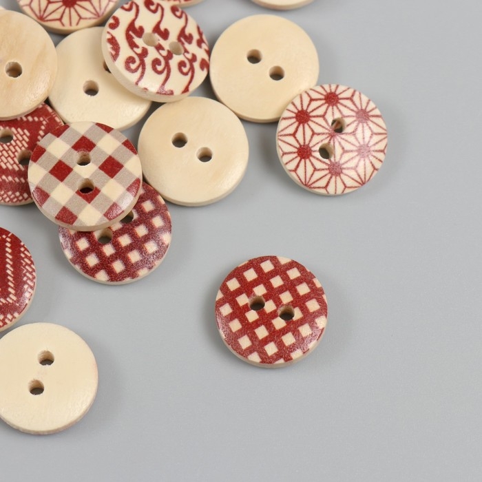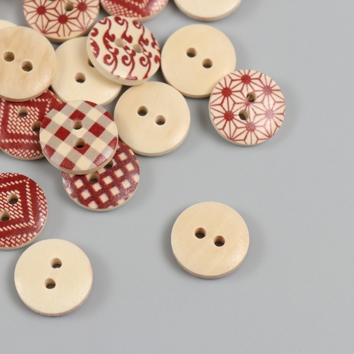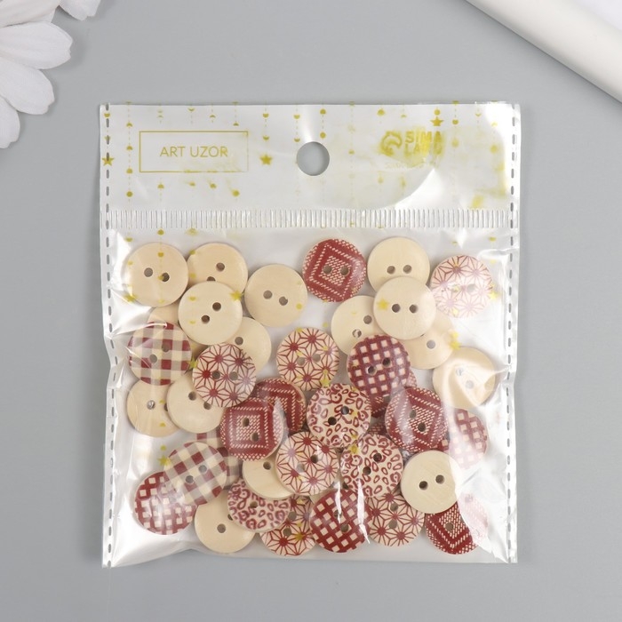 Пуговицы дерево для творчества 2 прокола "Узоры" кофейный набор 40 шт 1,5х1,5х0,4 см