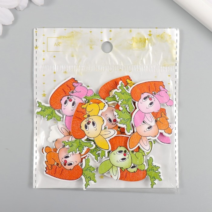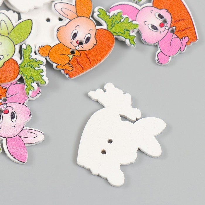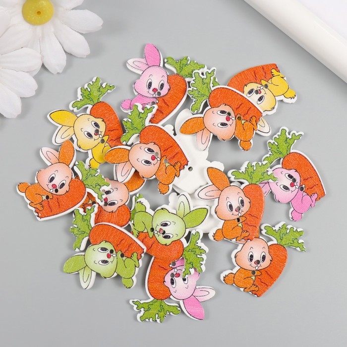Пуговицы дерево для творчества 2 прокола "Зайчик с морковкой" набор 15 шт 3,3х3,7 см