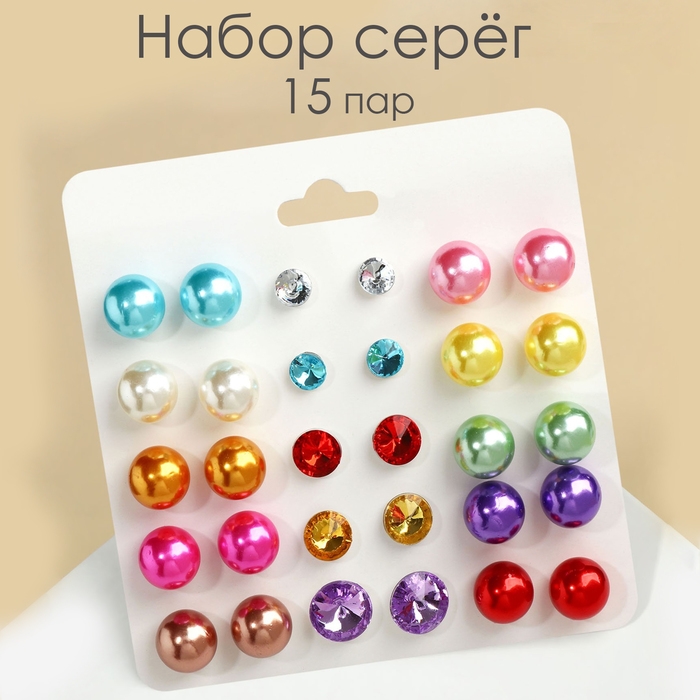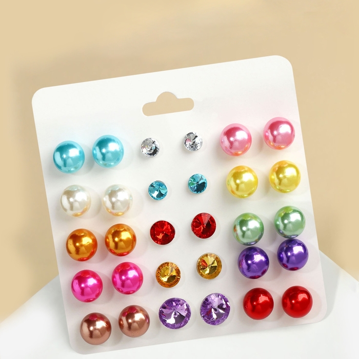 Пусеты 15 пар «Минимал» шарики d=5-10 мм, цветные