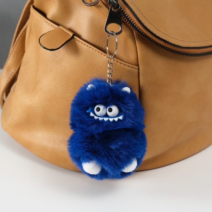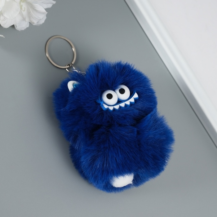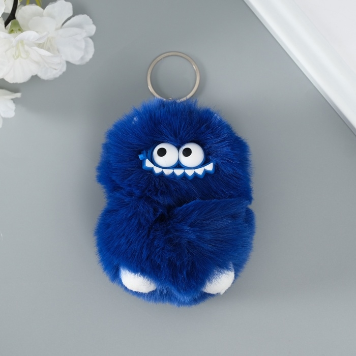 Пушистик на кольце "Монстр зубастик" синий 10х8х8 см