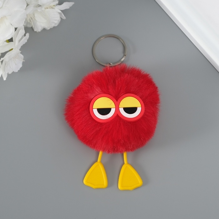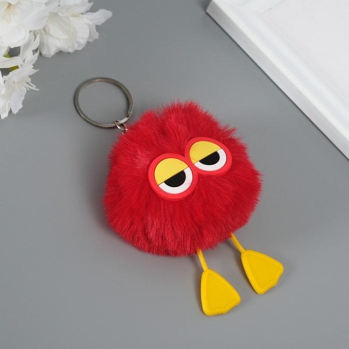 Пушистик на кольце "Трудяга" красный 7,6х6х6 см