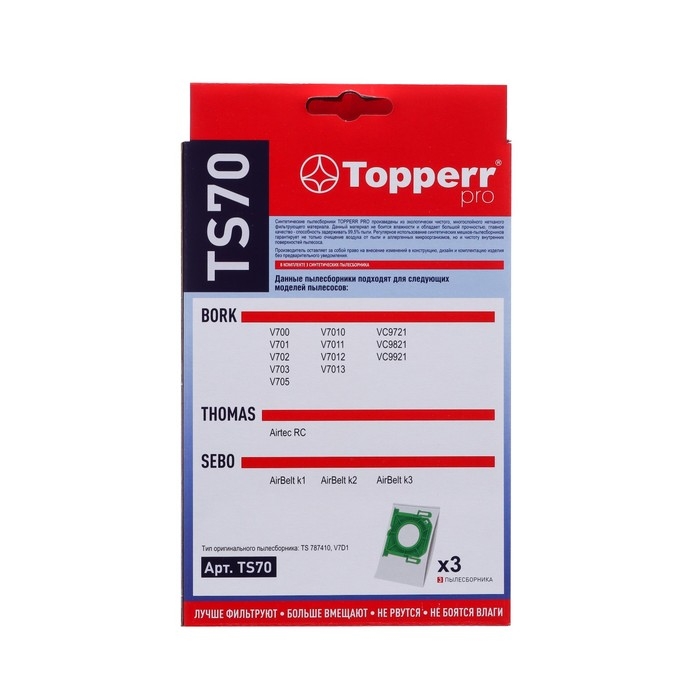 Пылесборник Topperr синтетический для пылесоса Thomas, Sebo, Bork представляет собой комплект из трех пылесборников.