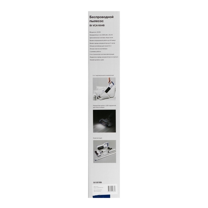 Пылесос Blackton Bt VCA1604B, вертикальный, 120/40 Вт, 0.5 л, бело-синий
