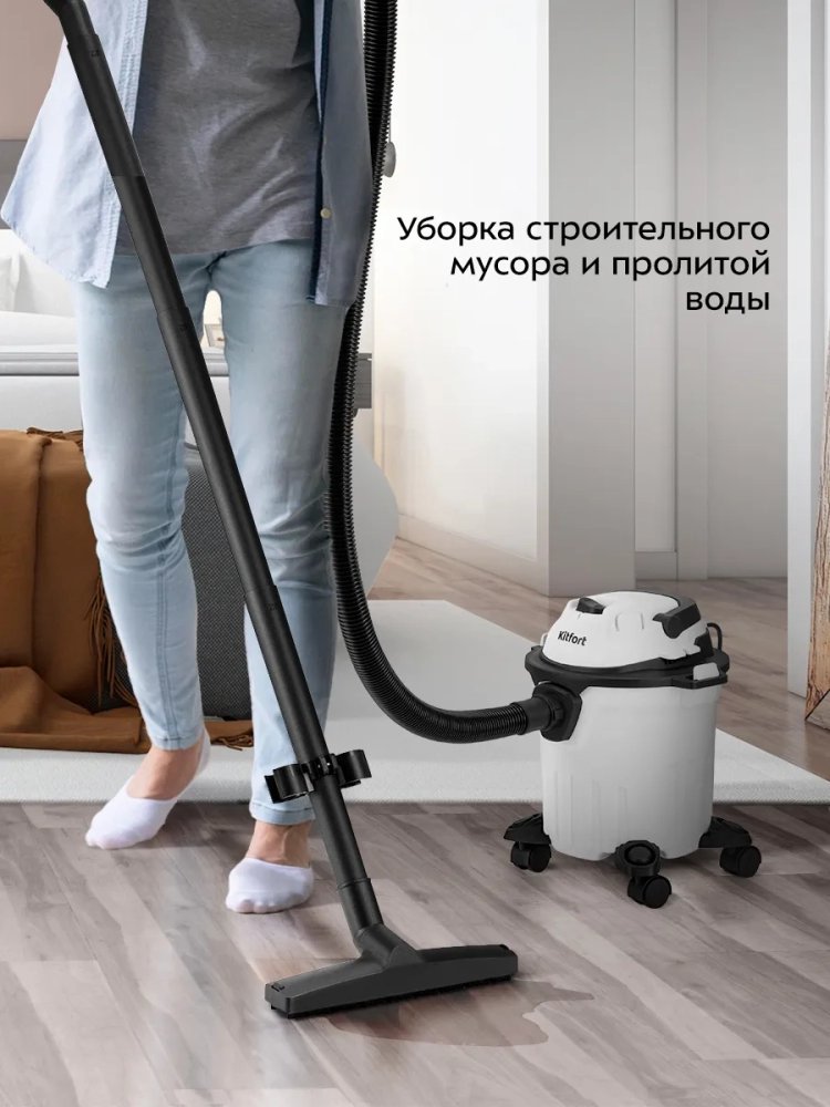 Хозяйственный пылесос Kitfort КТ-5211 предназначен для уборки бытовых помещений различной площади. Устройство способно собирать опилки, мелкий строительный мусор, а также пролитую на пол воду, и подойдет для уборки в гараже, мастерской, приусадебном участке или в квартире после ремонта.