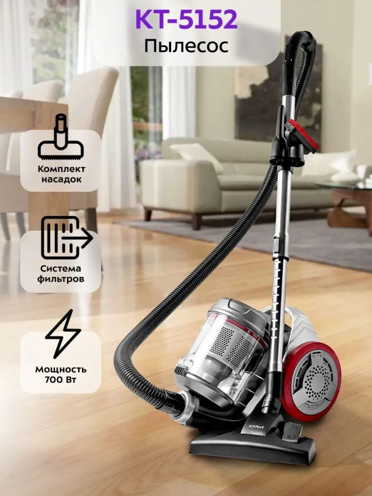Пылесос Kitfort КТ-5152 имеет современную многоуровневую систему фильтрации, что помогает провести качественную уборку. Также пылесос оснащен выходным фильтром, который уменьшает выброс пыли обратно в воздух. Благодаря комплекту насадок пылесос удобно использовать как при генеральной уборке, так и при локальной. С ним утомительная уборка превращается в легкое и увлекательное занятие, а время уборки сокращается вдвое.