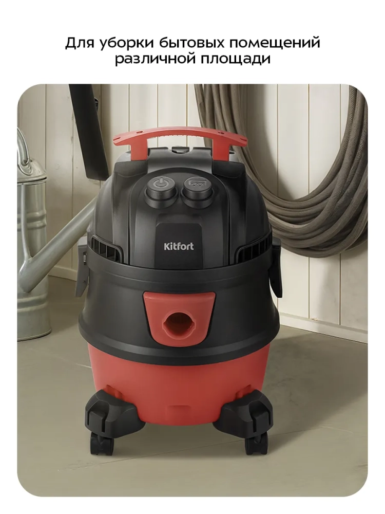 Пылесос хозяйственный Kitfort КТ-5337 предназначен для уборки бытовых помещений различной площади. Устройство позволит собрать мелкий мусор, а также пролитую на пол воду.