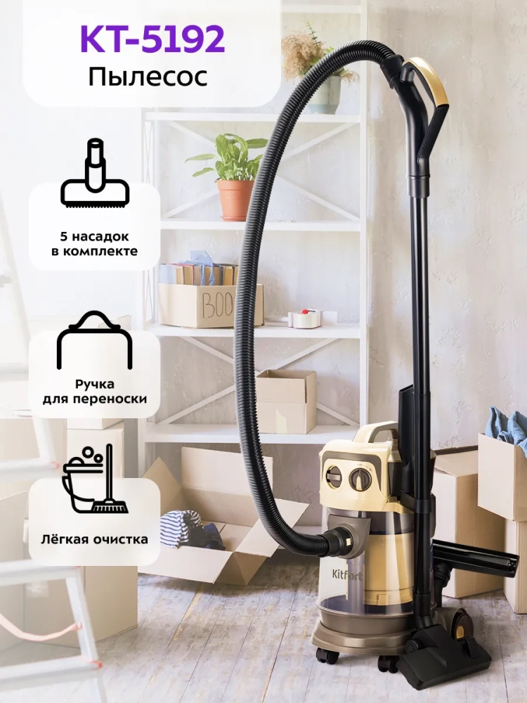 Пылесос Kitfort КТ-5192 имеет современную многоуровневую систему фильтрации, что помогает провести качественную уборку. Благодаря комплекту насадок пылесос удобно использовать как при генеральной уборке, так и при локальной. Устройство способно собирать опилки, мелкий строительный мусор и пролитую на пол воду, и подойдет также для уборки в гараже, мастерской, приусадебном участке или в квартире после ремонта.