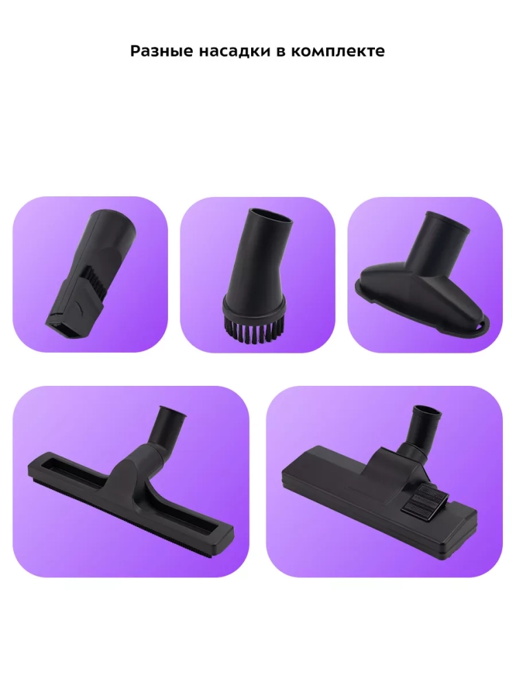 Устройство оснащено колесами для легкого перемещения во время уборки и ручкой для переноски. Специальные держатели на корпусе позволяют компактно и удобно хранить аксессуары. Также на корпусе есть отсек для хранения шнура питания.