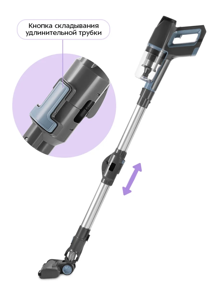 Одно из главных достоинств вертикального пылесоса — его компактность и маневренность. Пылесос поможет вам убраться в узком коридоре или комнате, заполненной мебелью и предметами. Для удобства хранения в комплекте поставляется кронштейн, который крепится к стене. Для владельцев небольших квартир, которые сталкиваются с проблемой хранения бытовых приборов, приобретение этой модели будет оптимальным вариантом.