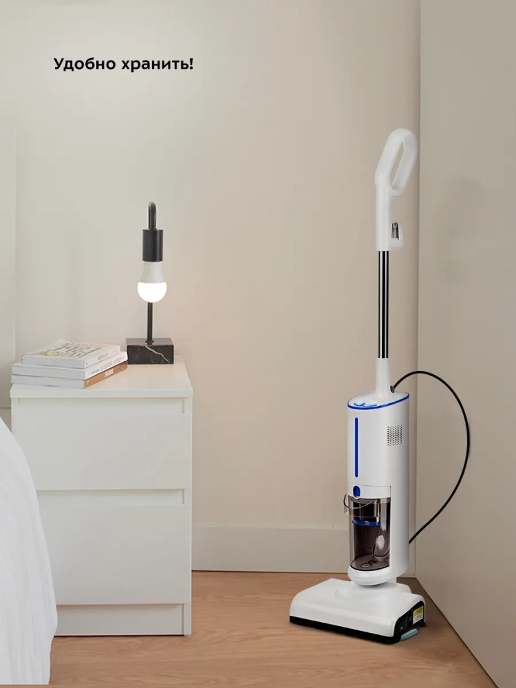 Паровой пылесос имеет функцию вертикальной парковки и занимает мало места при хранении, а во время работы может легко поместиться в узкий коридор или комнату, заполненную различными предметами. Для владельцев небольших квартир, которые сталкиваются с проблемой, где же хранить пылесос, приобретение вертикальной модели с вытянутой вверх конструкцией будет оптимальным вариантом.