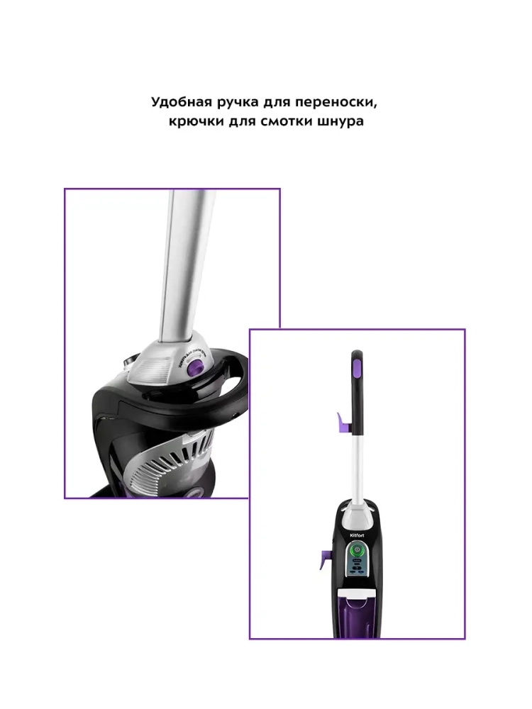 Вертикальный пылесос с функцией паровой швабры Kitfort КТ-535 удобен при локальной и генеральной уборке. Он всасывает пыль и мелкий мусор, а затем очищает поверхность от грязи, въевшихся пятен и жира при помощи горячего пара. Пар также дезинфицирует поверхность от бактерий и микробов и уничтожает клещей и других мелких вредителей.