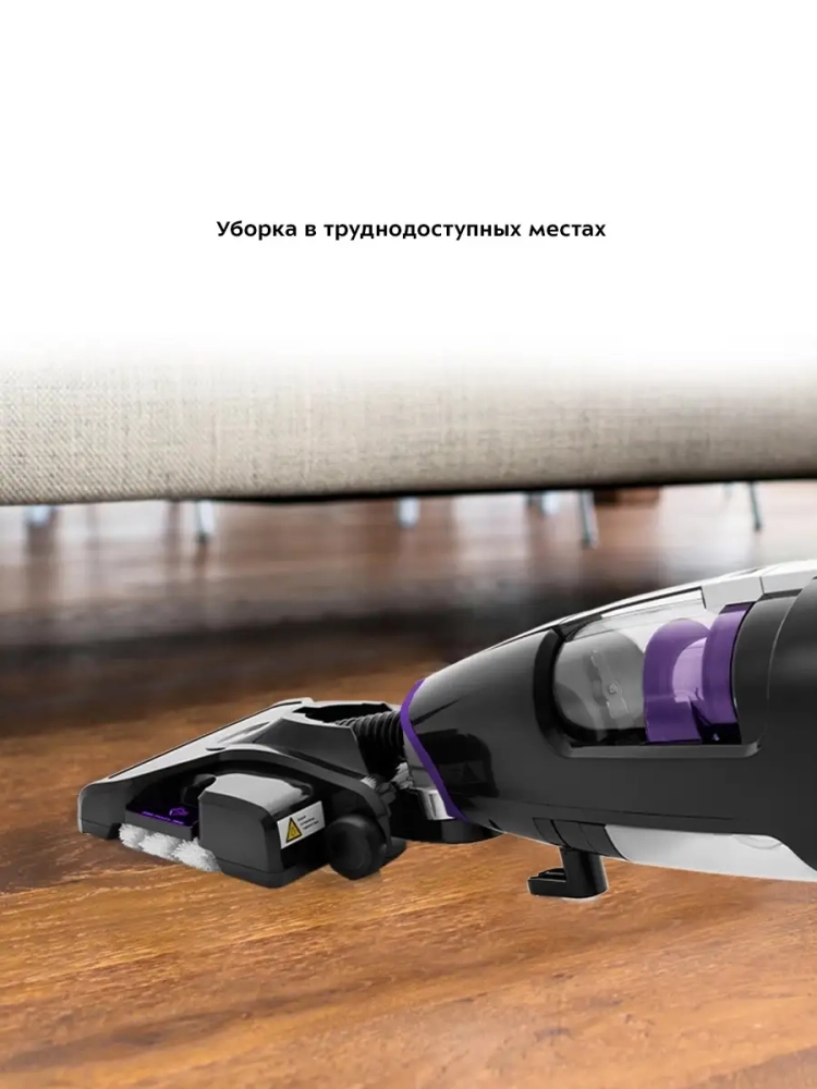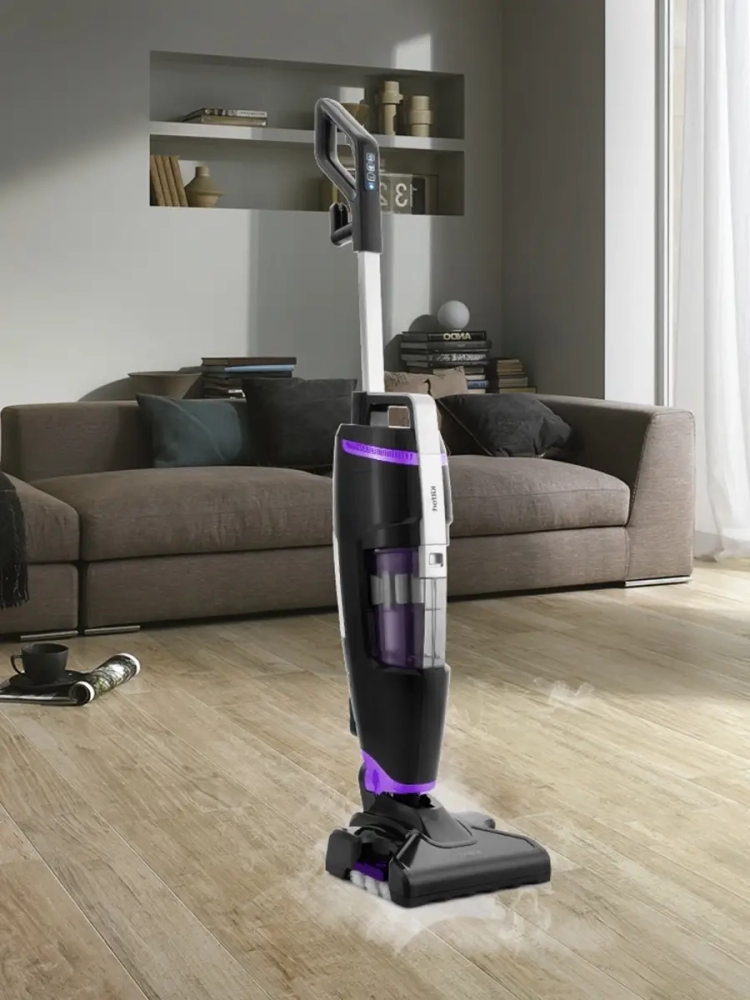 Паровой пылесос имеет функцию вертикальной парковки и занимает мало места при хранении, а во время работы может легко вписаться в узкий коридор или комнату, заполненную различными предметами.