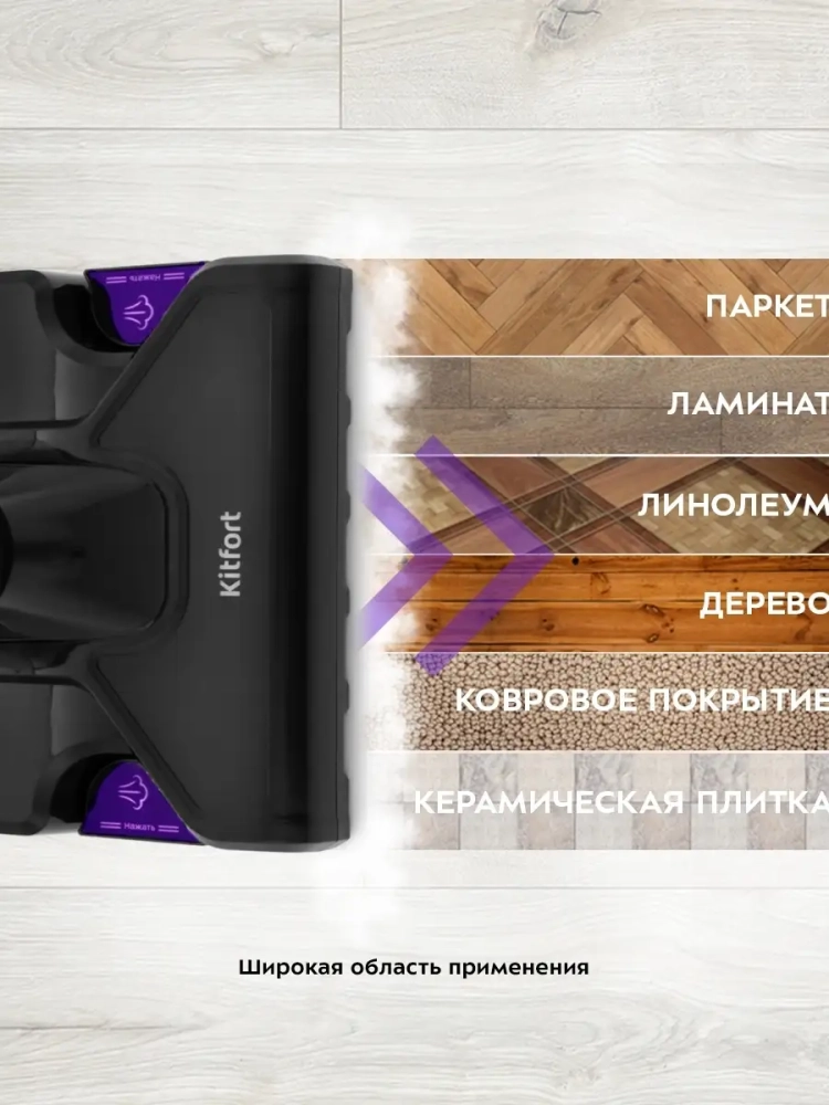 Вертикальный пылесос с функциями паровой швабры Kitfort KT-575 удобен при локальной и генеральной уборке. Прибором можно пользоваться как пылесосом и как паровой шваброй по отдельности, а также одновременно — всасывая пыль и мелкий мусор, очищать поверхность от грязи, въевшихся пятен и жира при помощи горячего пара.