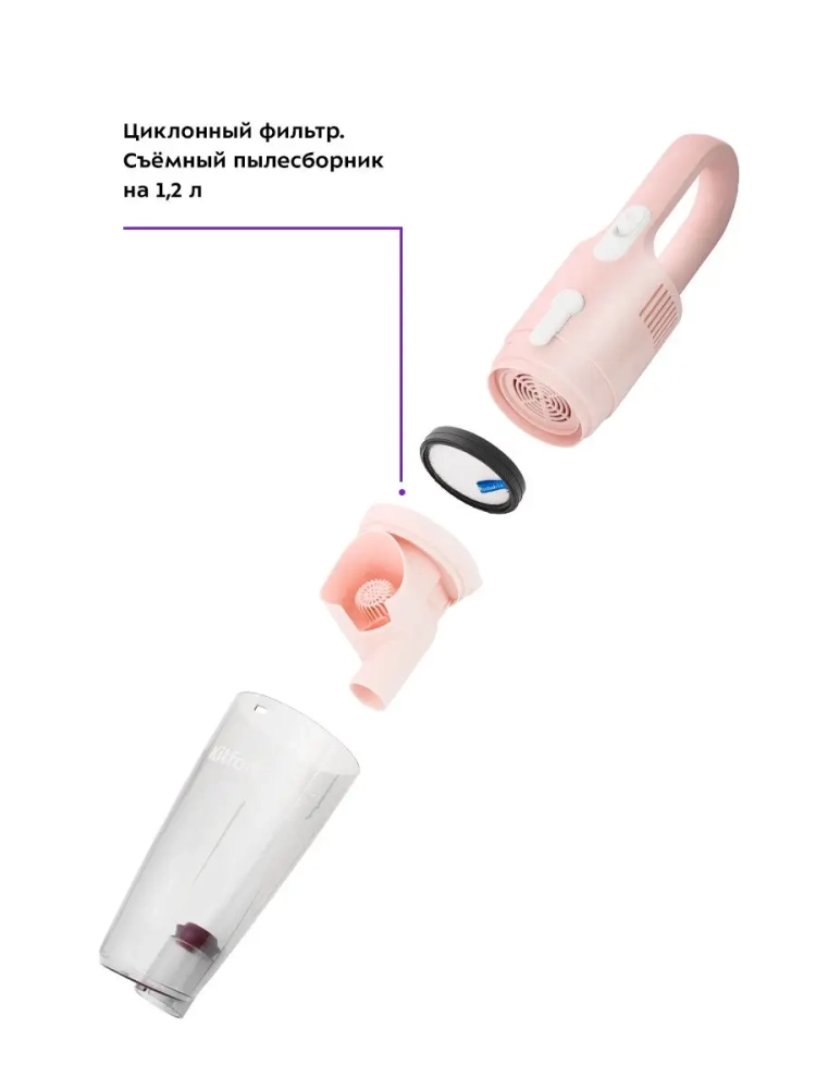 Пылесос оборудован циклонным фильтром, обеспечивающим хорошую очистку. Контейнер пылесборника легко снимается.