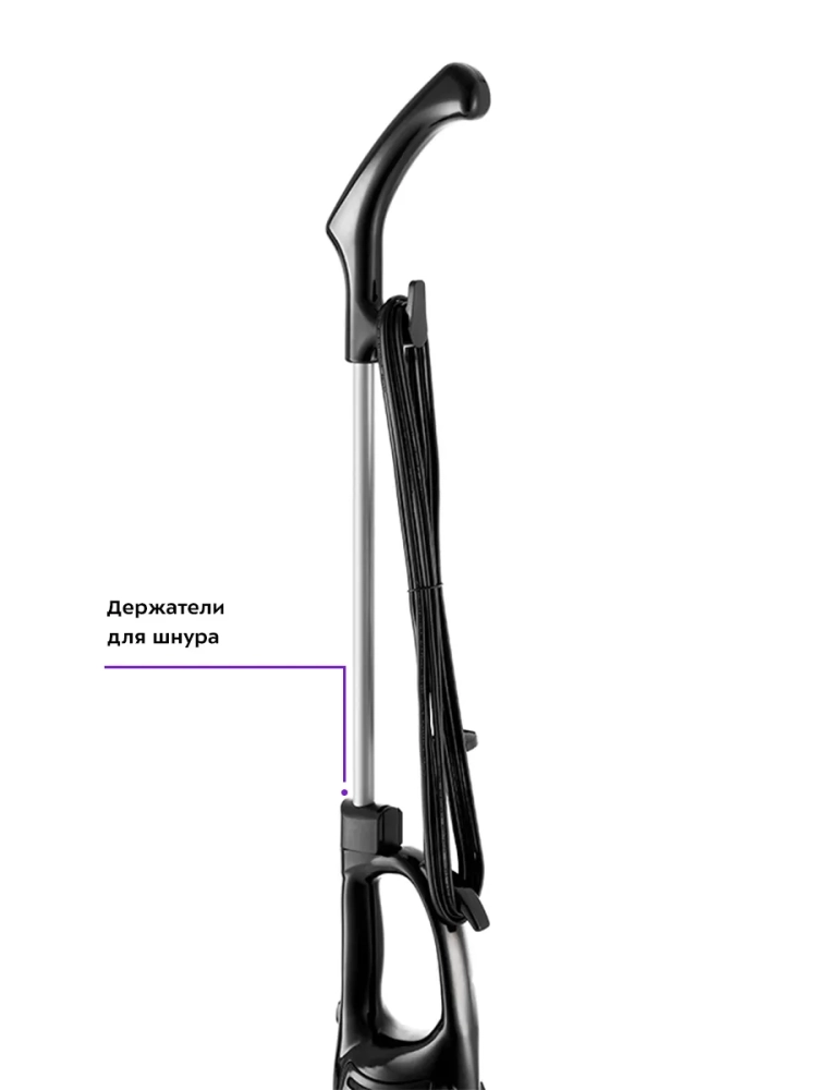 Вертикальный пылесос хорошо подходит для оперативной уборки, например, рассыпанных крошек или песка от обуви в коридоре. У пылесоса КТ-597 есть специальные держатели для удобного хранения шнура. Под верхним держателем есть крючок для более удобного размещения шнура во время уборки.