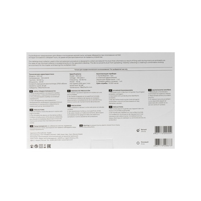 Пылесос для маникюра TNL Motion, 40 Вт, 2700 об/мин, 30 Дб, 220 В, белый