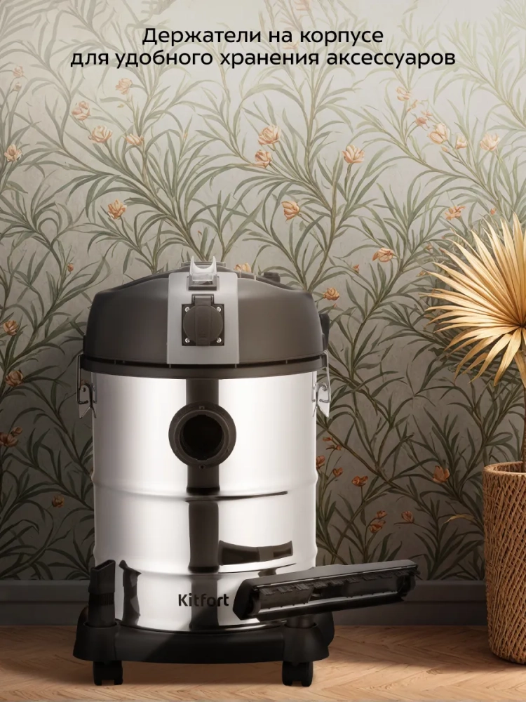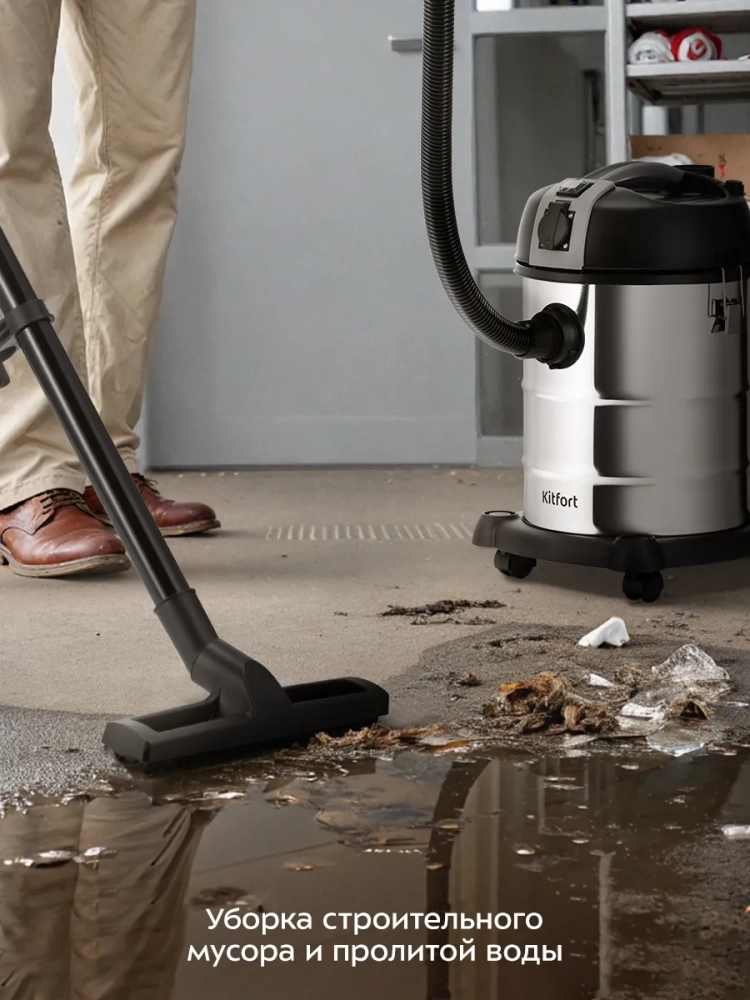 Пылесос хозяйственный Kitfort KT-5249 предназначен для уборки бытовых помещений различной площади. Устройство способно собирать мелкий мусор, а также пролитую на пол воду.