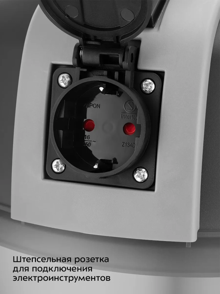На корпусе пылесоса есть штепсельная розетка для подключения электроинструментов. Розеткой можно пользоваться, если пылесос подключен к сети.
