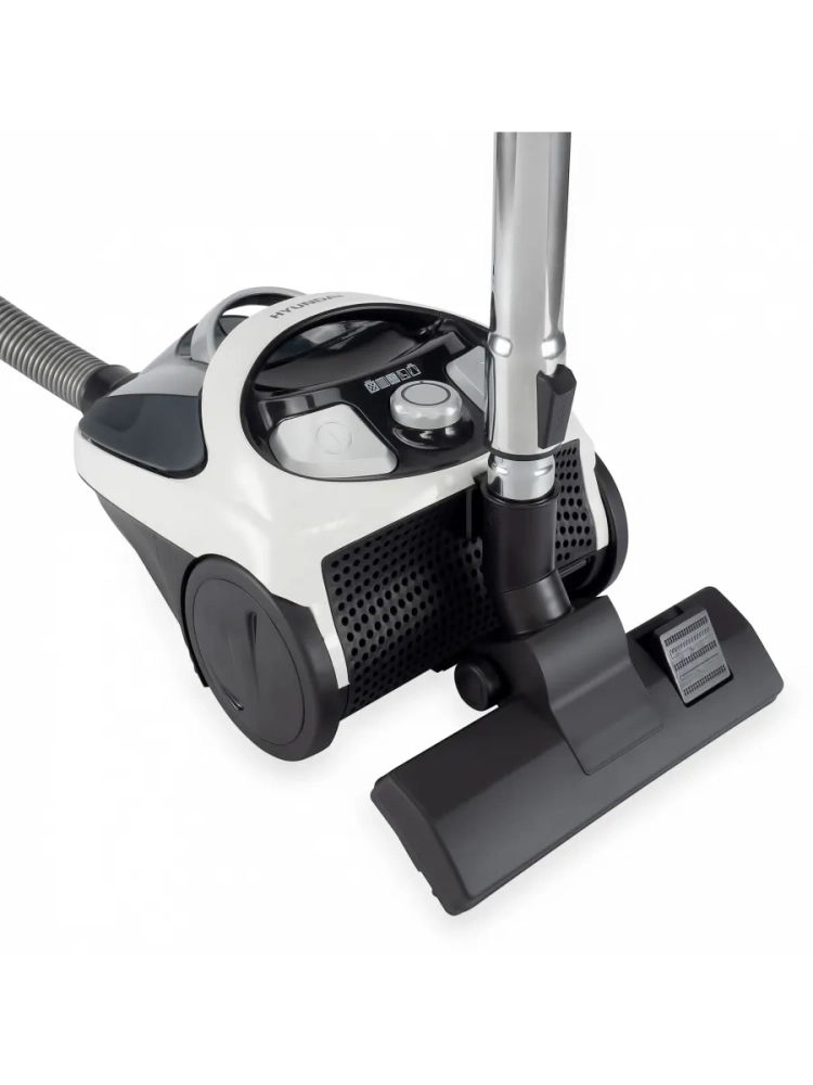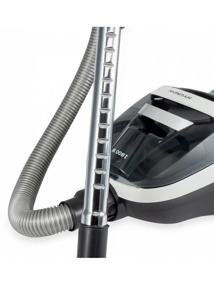 Девайс оснащён двигателем с общей мощностью 1800 Вт, но непосредственно для всасывания используется 250 Вт. Такое сочетание двух параметров преследует цель снизить энергопотребление, не прибегая при этом к компромиссам по качеству сухой уборки. Кроме того, у данной модели варьируется мощность. Для этого на её лёгком и прочном пластиковом корпусе предусмотрен эргономичный поворотный регулятор с пятью опциями. Но даже на максимальном выставленном уровне громкость работы Hyundai HYV-C1995 не превышает 84 дБ.