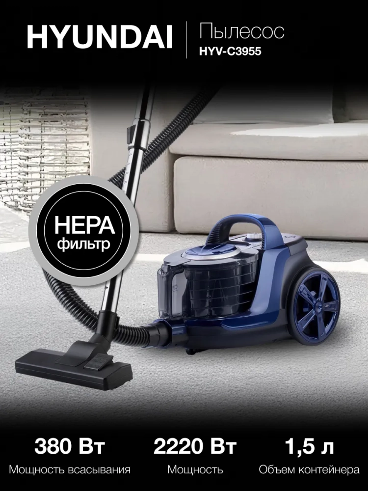 Пылесос HYUNDAI HYYV-C3955 – это современный и мощный прибор, созданный для эффективной уборки в жилых помещениях. Благодаря мощности всасывания 380 Вт и общей мощности 2200 Вт, он легко справляется с пылью, грязью и шерстью на любых поверхностях, включая ковры, паркет и мебель.