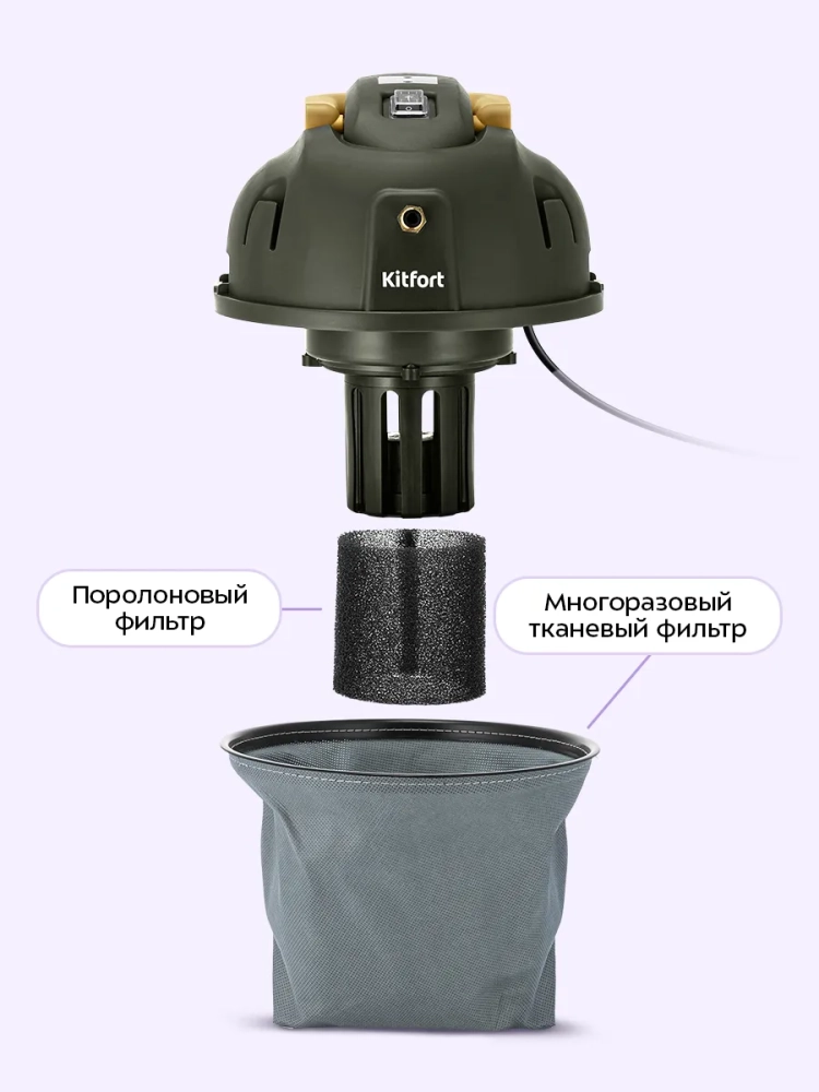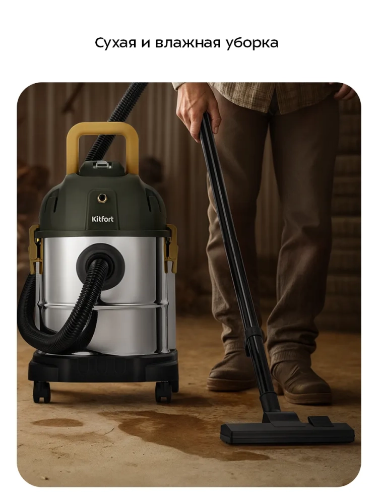 Моющий хозяйственный пылесос Kitfort КТ-5543 предназначен для сухой и влажной уборки бытовых помещений различной площади. Устройство позволит собрать мелкий мусор, а также пролитую на пол воду.
