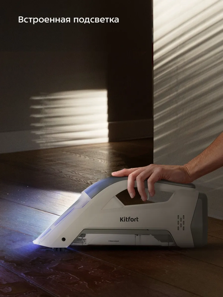 Ручной моющий пылесос Kitfort КТ-5195 поможет очистить обивку дивана, кресел, сидений в машине и другой мягкой мебели, а также ковры и ковровые покрытия. При нажатии на кнопку пылесос подает чистую воду на очищаемую поверхность, а затем всасывает воду с пылью и другими загрязнениями.