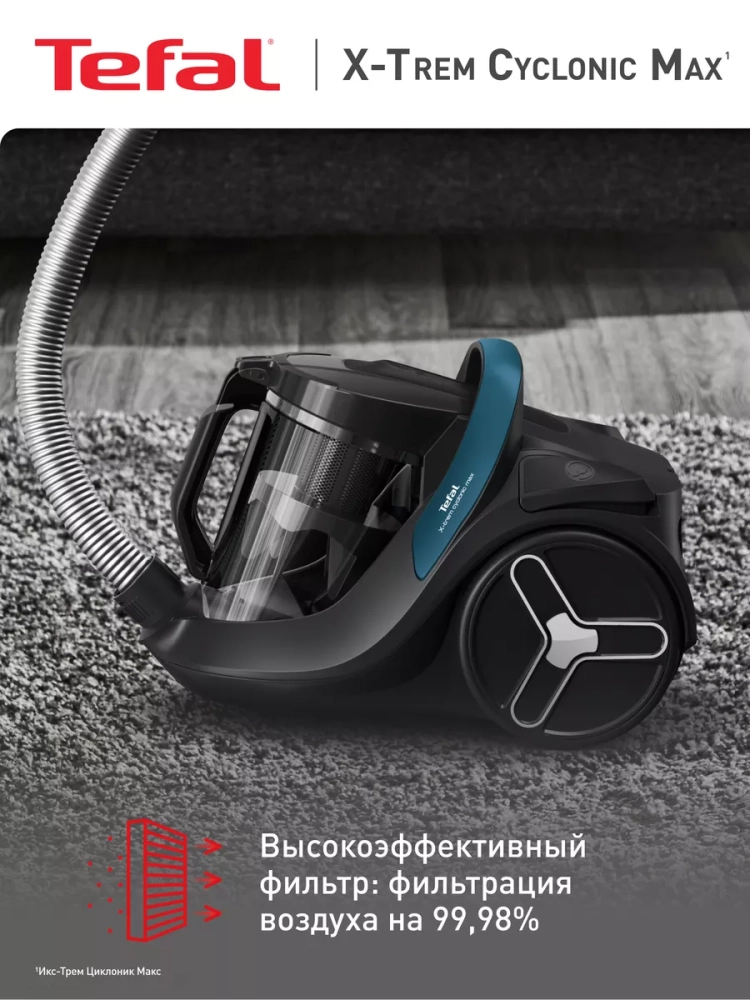 Оснащенный широким набором функций и аксессуаров, пылесос X-Trem Cyclonic Max обеспечивает оптимальный результат на любых типах покрытий, сохраняя безупречную чистоту в вашем доме. Широкий радиус действия 9 м для комфортной уборки больших помещений. Насадка с двумя рабочими положениями для эффективной уборки всех типов поверхностей. HEPA-фильтр (фильтрация минимум 99,98%) очищает воздух в процессе уборки, идеально для семей и людей, склонных к аллергии.